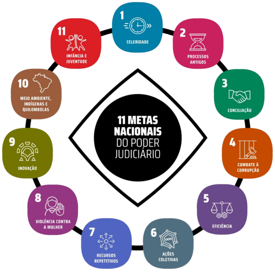 As metas do poder judiciário são definidas, anualmente, em reuniões da Rede de Governança Colaborativa do Poder Judiciário.