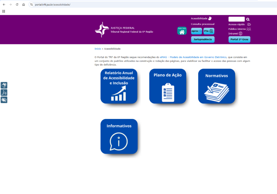 Página de Acessibilidade: https://portal.trf6.jus.br/acessibilidade/