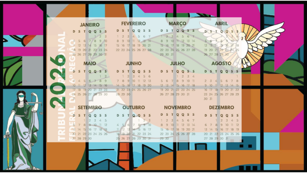 O Tribunal Regional Federal da 6ª Região (TRF6) já disponibilizou o calendário institucional de 2026, reunindo, de forma organizada, os feriados nacionais, forenses e locais, além de datas relevantes das subseções judiciárias em Minas Gerais. A publicação orienta o funcionamento da Justiça Federal ao longo do ano e serve como referência para magistrados(as), servidores(as), advogados(as) e a sociedade.