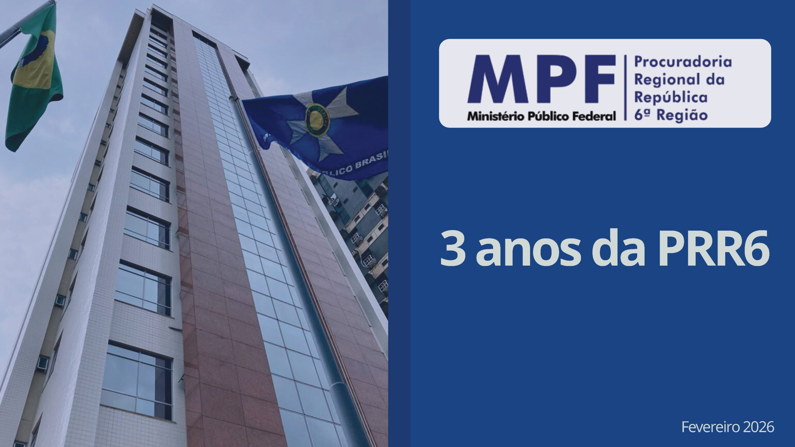 O Tribunal Regional Federal da 6ª Região (TRF6) parabeniza o Ministério Público Federal (MPF) pela celebração dos três anos de instalação da Procuradoria Regional da República da 6ª Região (PRR6), marco relevante para o fortalecimento do sistema de Justiça em Minas Gerais e para o aprimoramento da atuação institucional na segunda instância da Justiça Federal.