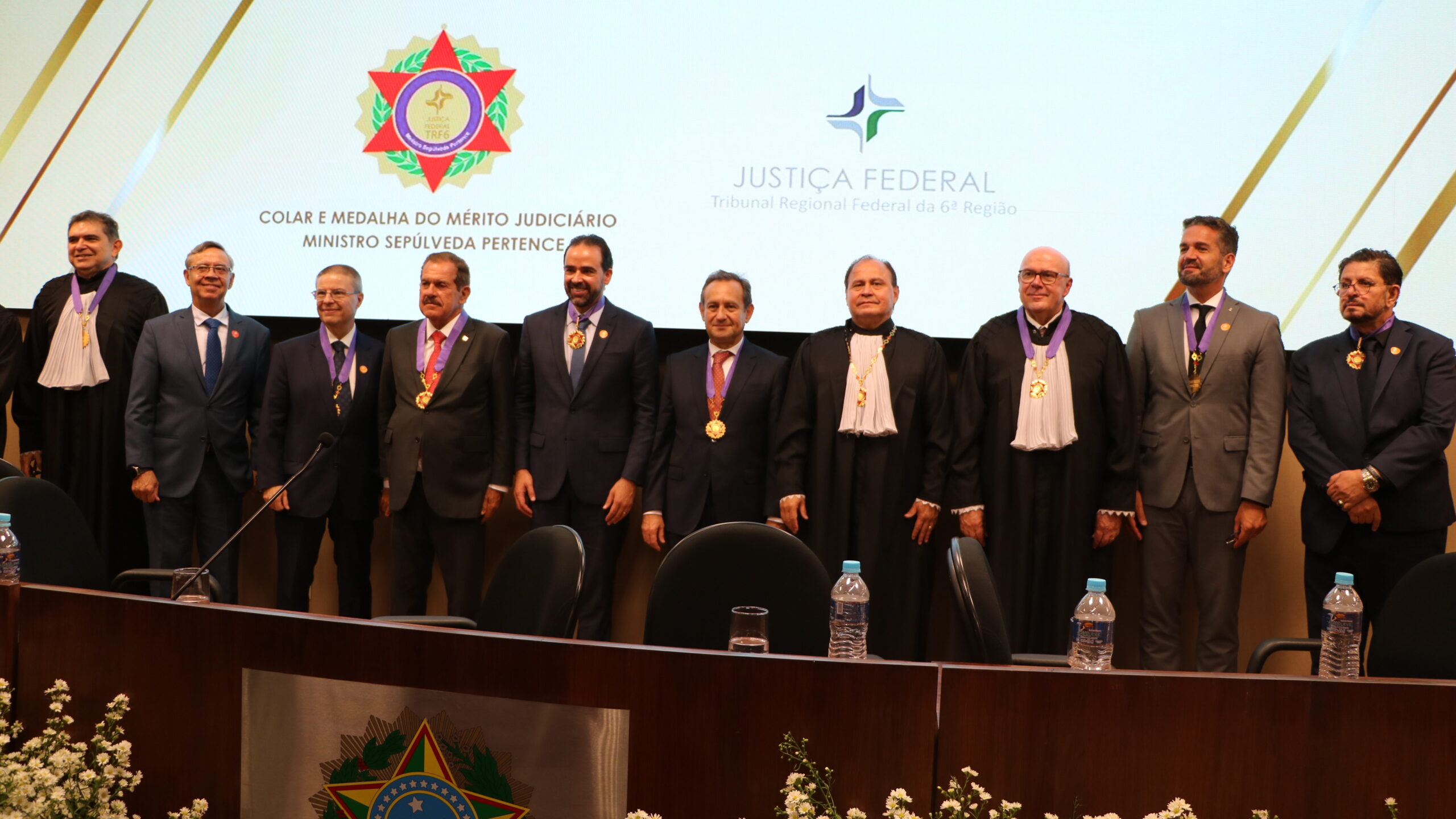 O Tribunal Regional Federal da 6ª Região (TRF6) realizou, na última sexta-feira (17/4/2026), a primeira sessão solene da Comenda do Mérito Judiciário Ministro Sepúlveda Pertence, com a entrega de colares e medalhas. A cerimônia ocorreu no auditório do Plenário do Conselho Regional de Engenharia e Agronomia de Minas Gerais (CREA-MG) e reuniu autoridades dos Poderes Judiciário, Executivo e Legislativo.