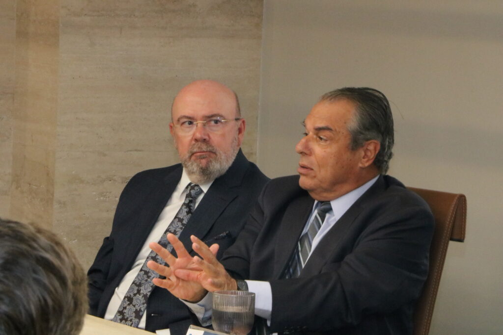 Nesta terça-feira (21/02), o Tribunal Regional Federal da 6ª Região (TRF6) realizou uma visita à sede da Ordem dos Advogados do Brasil – Seção Minas Gerais (OAB-MG). O evento contou com a presença do presidente do TRF6, desembargador federal Vallisney Oliveira, acompanhado do vice-presidente e corregedor regional, desembargador federal Ricardo Machado. Também participaram os desembargadores federais Monica Sifuentes, Rollo D’Oliveira, Grégore Moura, Derivaldo Figueiredo e Flávio Boson, além do juiz federal secretário-geral do TRF6, Antônio Francisco do Nascimento.